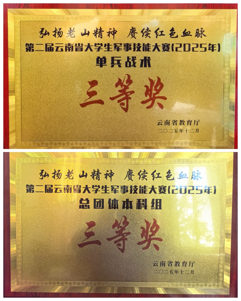 近日,2025年云南省大学生军事技能大赛圆满落幕,全省78所高校1100名学子齐聚麻栗坡县同台竞技。昆明学院代表队奋勇拼搏、全力以赴,斩获团体总分三等奖与单兵战术单项三等奖,彰显学校国防育人成效。